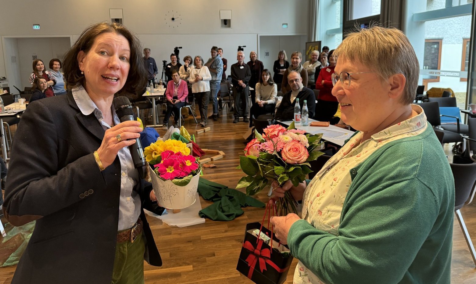Dafür leisten Kirchenleute tagtäglich vor Ort, was Professor Breul (Uni Dortmund) theoretisch unternehmen wollte: die tägliche „Paartherapie“ von Dogma und Pastoral, „dialektisch verzahnt“ und ganz praktisch. Carola von Albedyll beispielsweise, Gemeindereferentin in der Diaspora des Kraichgaus (Erzdiözese Freiburg). Ländliche Gegend, eine aus 14 Dörfern zusammengepresste Seelsorgeeinheit, kleine, geradezu aussterbende Gemeinschaften, die gemeinsam ihren Glauben feiern: Die „Ausdünnung des Gottesdienstangebots“ führe nicht dazu, dass Menschen aus dem einen Dorf ins andere zur Messe fahren und die Gemeinde dort vergrößern, sagt von Albedyll. Viele Menschen gingen eben gar nicht mehr zur Kirche: „Auch das Land wird immer säkularer.“ Da hülfen keine Seelsorgspläne und Stellenschlüssel, die ja vor allem in der Stadt und für städtische Kontexte erstellt worden seien. Es brauche auf dem Land eine andere Struktur – eine Kirche der Beziehungen mit „Geh-hin-Struktur“. Diesen Aspekt griff Matthias Henne, Oberbürgermeister von Bad Waldsee, auf und mahnte gemeinsames Positionieren und Handeln von politischer und kirchlicher Gemeinde zum „Wohle der Gesellschaft“ an. Heutige Herausforderungen ließen hier keinen Spielraum für ein Nebeneinander.