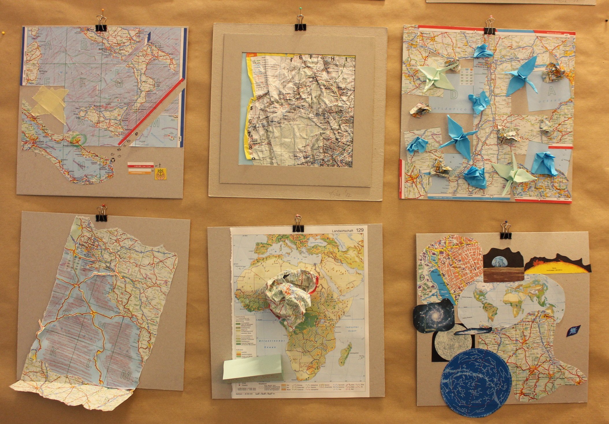 Der Freitagabend war mit „No-go-Areas“ überschrieben und widmete sich diesen Fragen: Wie nähere ich mich Tabus an? Umkreise ich sie oder gehe ich direkt auf sie zu? Die Arbeit mit Land- und Straßenkarten, mit Stadtplänen und Seiten aus Atlanten markierte drei Punkte: Planquadrat, Horizont und Zwischenräume. Das Planquadrat, nützlich zur Standortbestimmung, benennt die eigene Verortung, bietet Sicherheit. Anders der Horizont in seiner Ambivalenz von Sehnsucht nach dem Besseren, nach dem Hinter-sich-lassen-Können der Begrenzungen und gleichzeitig mit der Angst vor dem Ungewissen, dem Fremden, dem Unbekannten. Als drittes die Zwischenräume: freies Feld, Berge und Täler, breite Straßen, schmale Steige, Umwege oder direkte Wege. Was bewegt mich, aufzubrechen? Literarische Texte, das konkrete Gestalten der Landkarten und die „Flügel des Morgenrots“ aus Ps 139 führten durch den Abend, dargeboten in Bildern und Texten von Gabi Erne, mit Impulsen von Esther Berg-Chan und Barbara Janz-Spaeth.